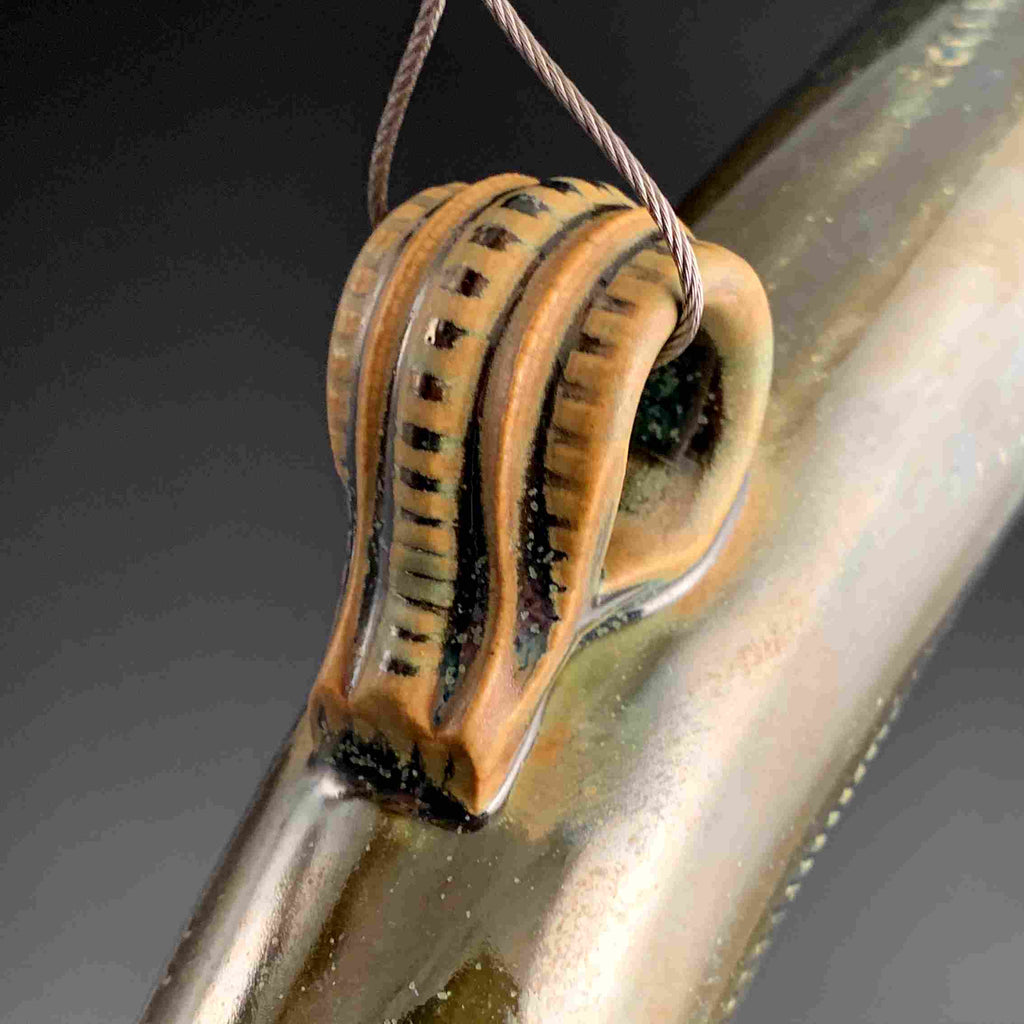Unique bird feeder. Hangs securely on a branch or hook. Measures 13"x 1.75".