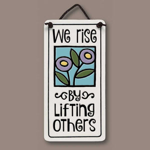 Spooner Creek Mini Charmer with quote, "We rise by lifting others." Measures 2.25" X 4."