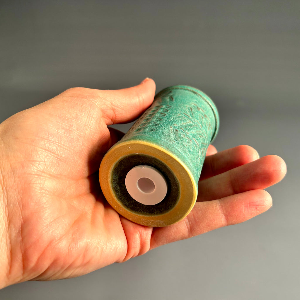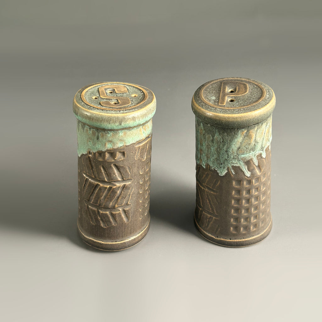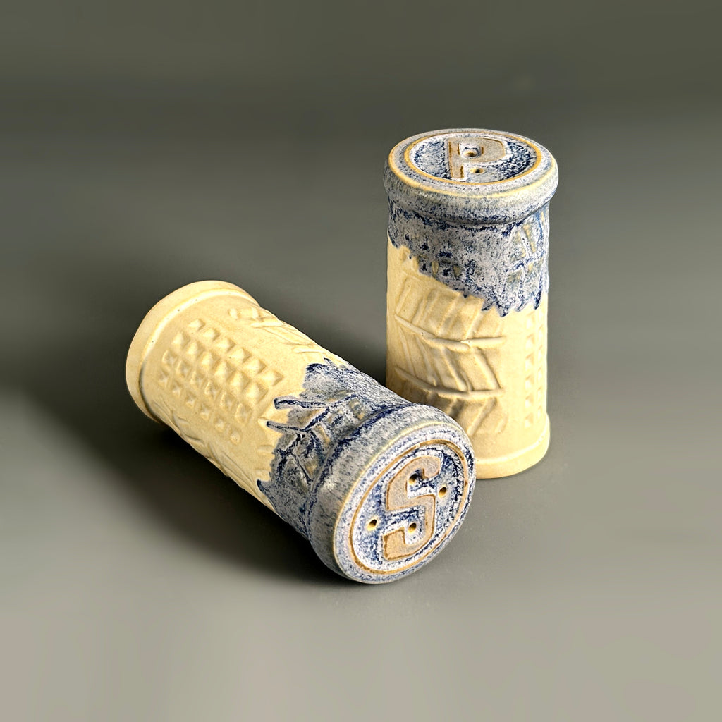Choose your favorite top embellishment — classic S/P or whimsical Checkers/Dots — to suit your kitchen décor or personal style. Every shaker is uniquely glazed by hand, creating a one-of-a-kind finish that celebrates Macone Clay’s signature blend of artistry and functionality.