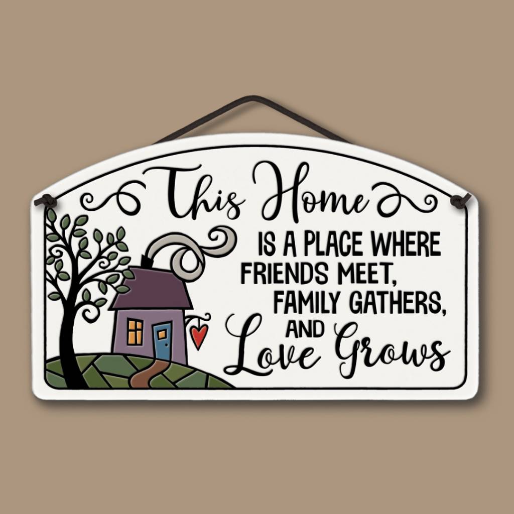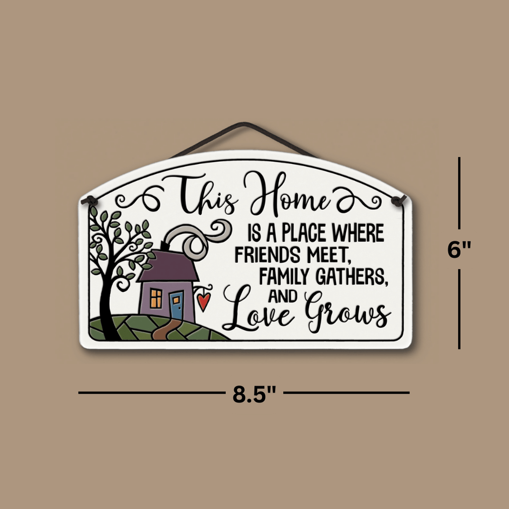 This Spooner Creek Large Arch Tile brings a heartfelt message into the spaces that matter most. Featuring a charming house and tree illustration alongside the comforting words, “This home is a place where friends meet, family gathers, and love grows,” this piece captures the warmth of meaningful connection and everyday togetherness.