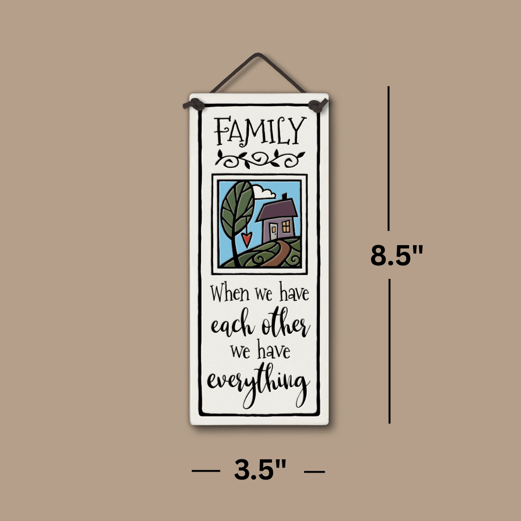 Celebrate the heart of home with this meaningful handcrafted ceramic tall tile from Spooner Creek. Featuring the touching quote “Family, when we have each other we have everything,” this piece combines heartfelt sentiment with artisan quality, making it a beautiful reminder of love, connection, and togetherness.